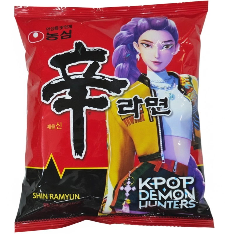 Taste the thrill with this limited-edition pack of Shin Ramyun featuring “K-Pop Demon Hunters” artwork. Includes 6 cups, each showing beloved characters. Perfect for collectors and ramen lovers alike — spicy, shareable, and iconic.